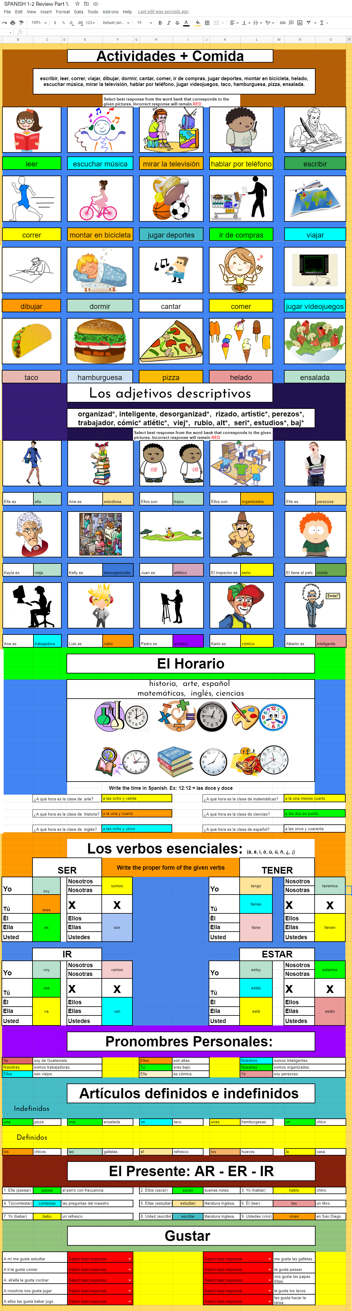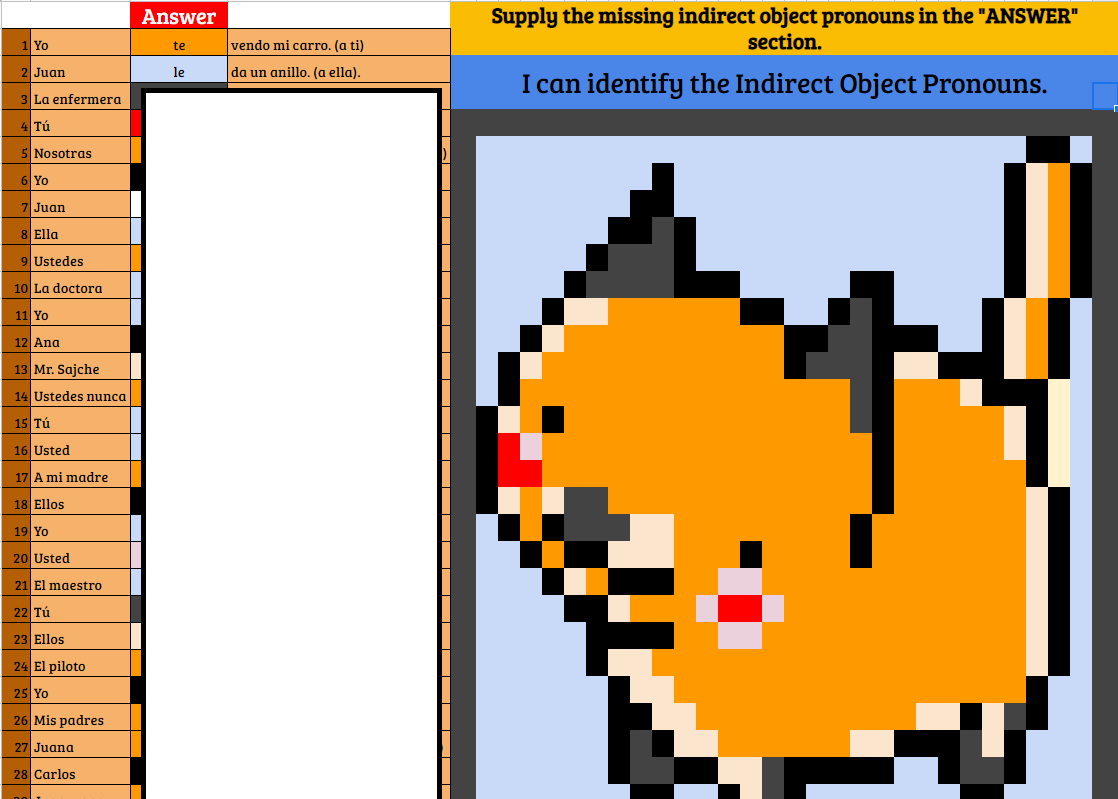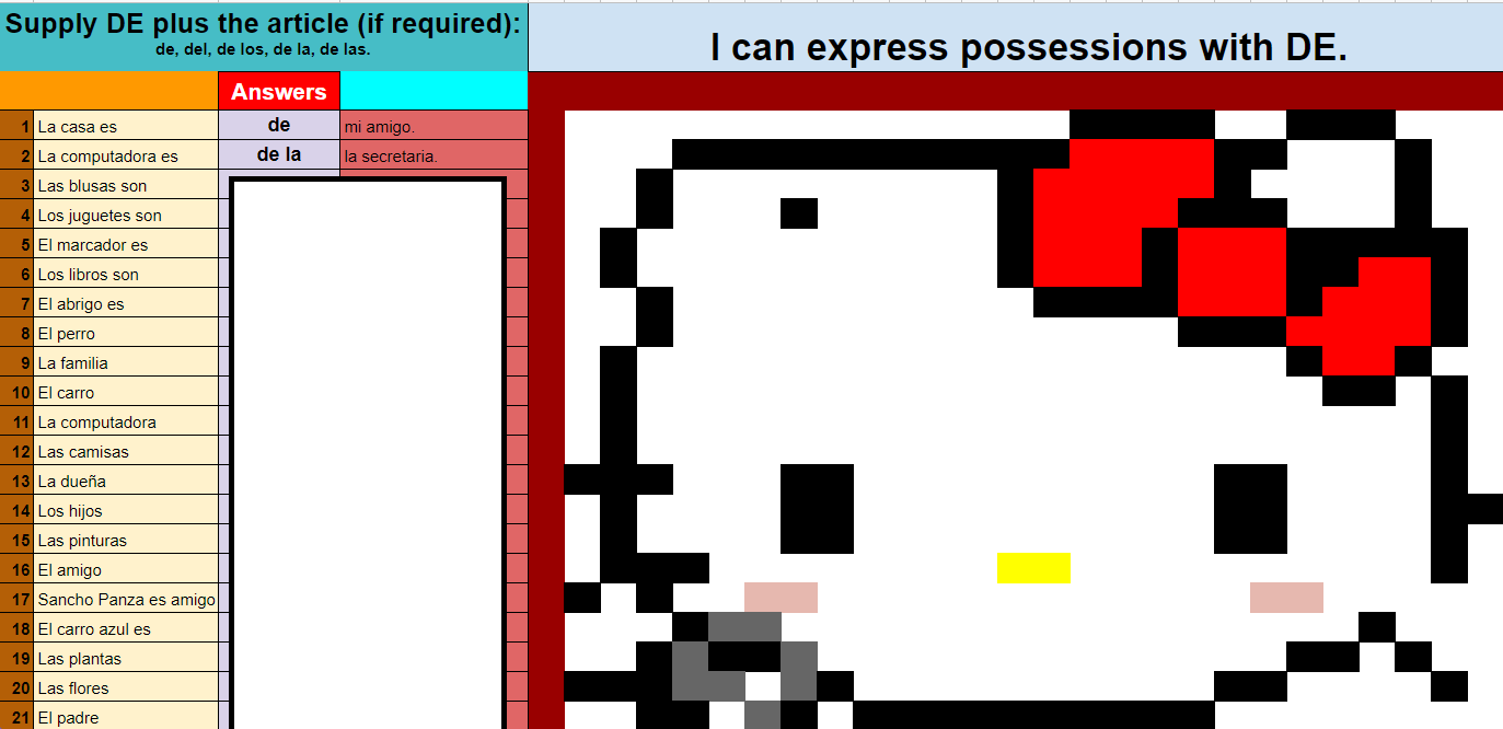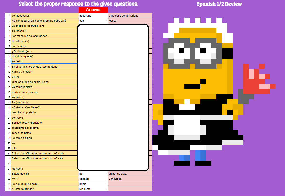 Pixel Art: Spanish 1/2 Final Exam Practice