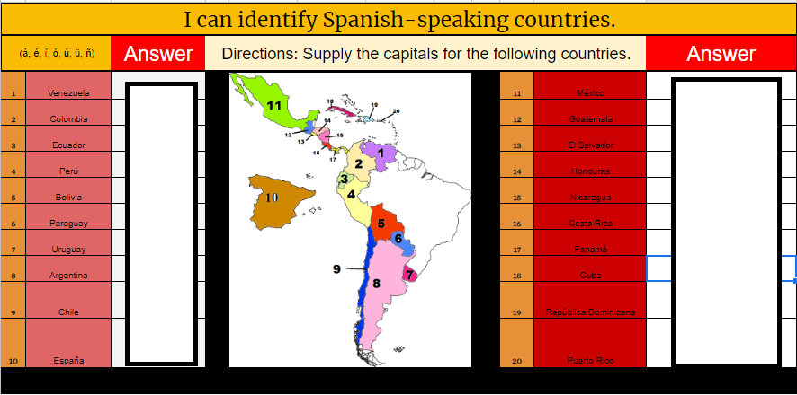 Spanish-Speaking Countries and Capitals Coloring Activity