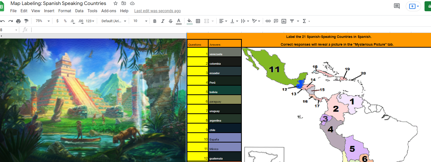Map Labeling: Spanish Speaking Countries-Pixel Art-